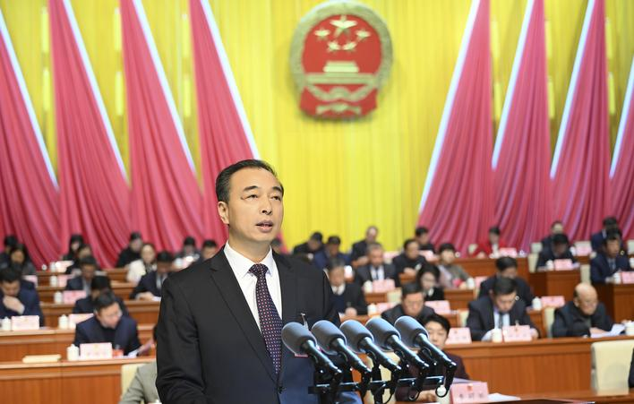 2月7日,市长朱良才在濮阳市第九届人民代表大会第五次会议上作政府工作报告。记者 僧少琴 摄