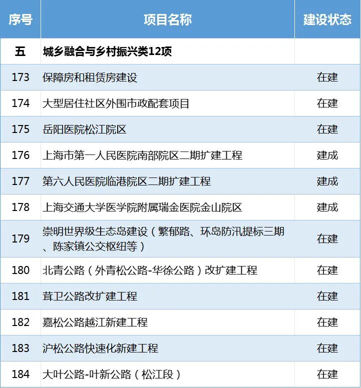 在建项目9项:岳阳医院松江院区、崇明世界级生态岛建设、北青公路(外青松公路-华徐公路)改扩建工程等。