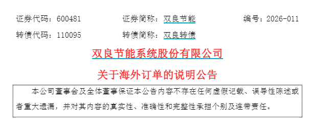 【大河财立方消息】2月12日,光伏龙头股双良节能(600481)发布关于海外订单的说明公告。