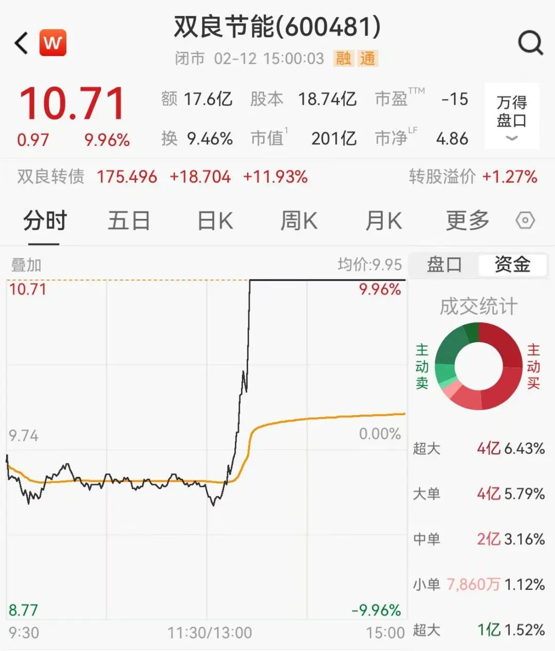 受此消息带动,下午开盘后,双良节能10分钟内快速拉升至涨停,总市值达201亿元。