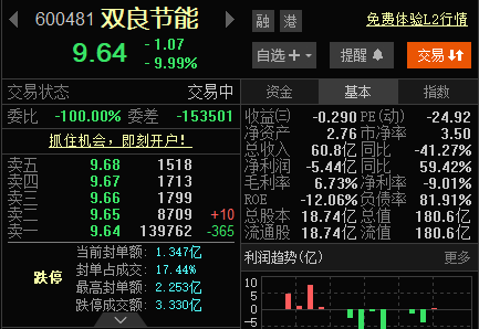 【大河财立方消息】2月13日,双良节能开盘跌停,封单最高一度达2.25亿元。