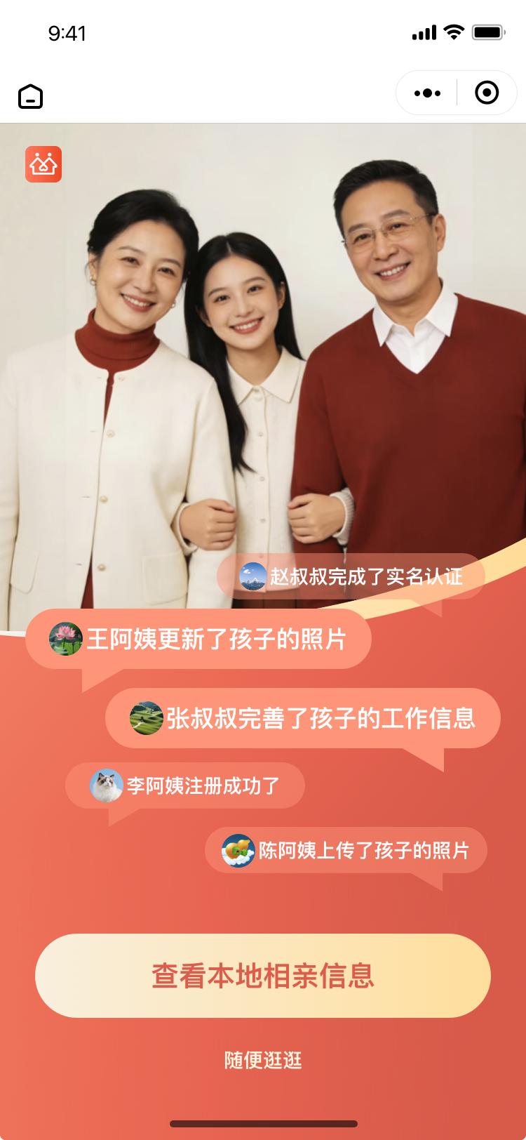 当下,随着婚姻新规落地,婚恋市场迎来理性回归,婚恋选择愈发注重家庭适配与责任担当。然而,传统线上相亲平台主要面向单身人士本人,功能设计复杂,操作门槛较高,难以满足父母辈用户的使用需求。家长群体普遍存在“想帮忙却无从下手”的困境,他们的婚恋焦虑缺乏有效的疏导和解决渠道。