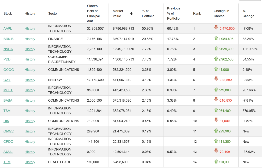 此外,段永平还增持了谷歌、拼多多,并大幅减持了光刻机巨头阿斯麦(减持幅度87.63%)。