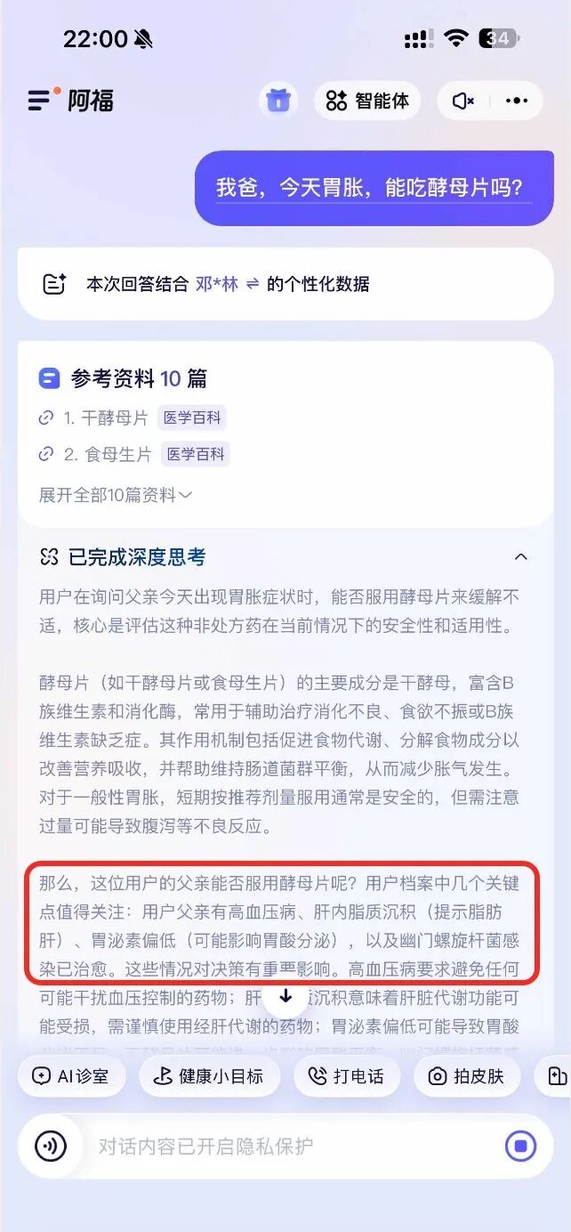 但比起这些热度,更值得关注的是它的产品定位——与偏娱乐化、工具化的其他AI不同,阿福聚焦的是“健康”这个垂直场景。
