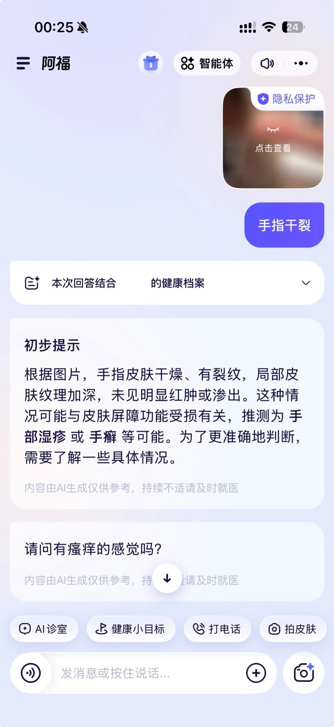 ✅皮肤起疹子拍一张,它会初步判断,层层分析可能原因,再给出下一步建议。