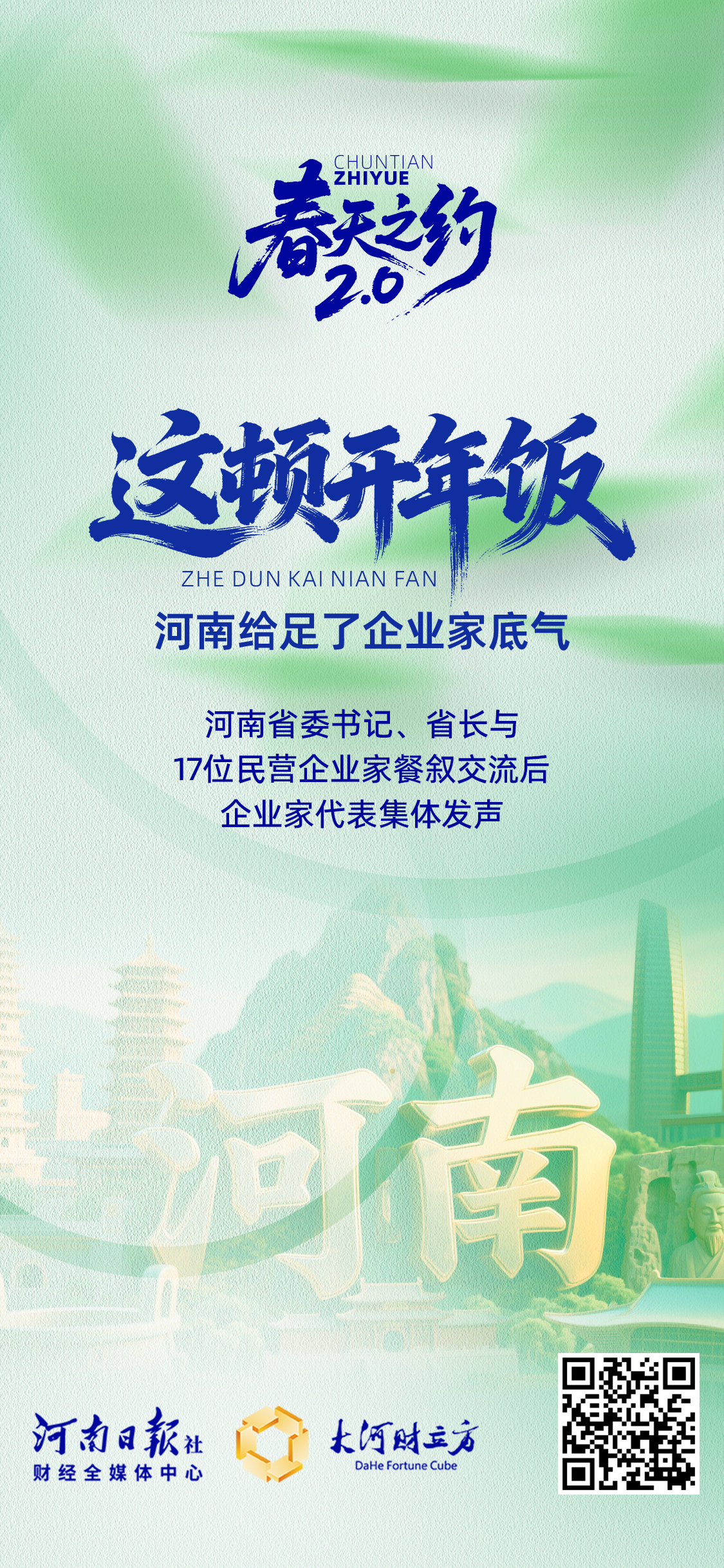 【大河财立方 记者 唐朝金 徐兵 吴春波 史冰倩 郑棋文 王磊彬 张克瑶 任冰 王鑫 裴熔熔 郝楠楠 关帅康】2月21日,农历正月初五,河南省委书记刘宁、省长王凯在郑州与全省民营企业家代表餐叙交流,共贺新春、共话发展、共谋未来。