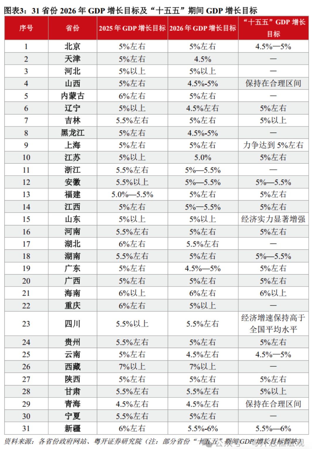 2026年是“十五五”开局之年,31个省份地方两会全部召开,各地审议通过了地方“十五五”规划纲要草案,提出了2026年经济社会发展指标预期目标和主要任务。