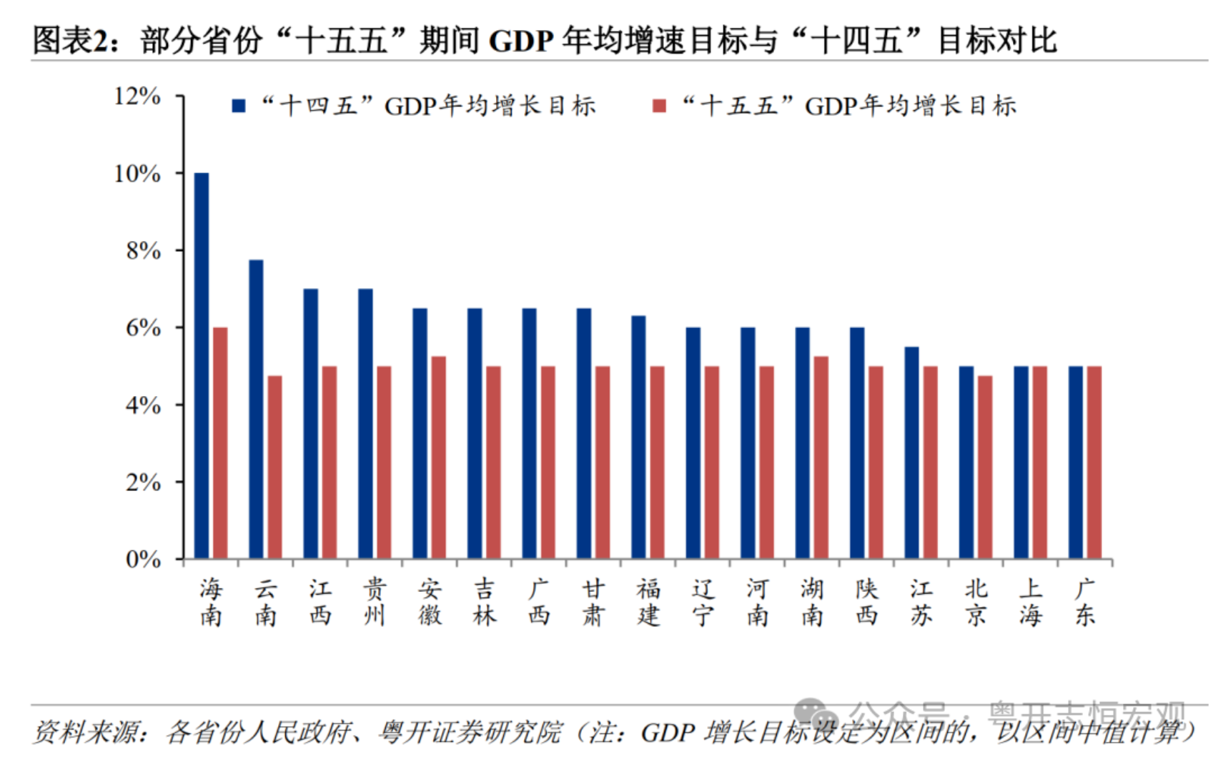 多数省份2026年目标与“十五五”目标保持一致或处于其区间内,避免大起大落,确保发展目标的连续性,争取“十五五”经济增长平稳开局。甘肃2026年目标设定在5.5%,高于“十五五”目标区间,在“十五五”初期抢占发展先机,也为应对未来不确定性预留了空间。辽宁等化债重点省份2026年目标设定相对审慎(仅4.5%左右),低于“十五五”期间目标(5%左右),由于短期需要优先化解债务风险,要采取以时间换空间的策略,为中长期可持续增长创造有利条件。广东2026年增长目标(4.5%~5%)同样低于“十五五”增长目标(5%左右),或与“十五五”初期侧重于结构调整、化解房地产风险,为后期经济增长积蓄力量。