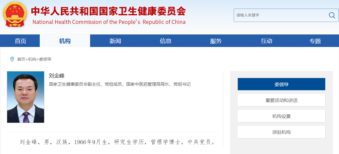 【大河财立方消息】2月27日,国家卫生健康委网站显示,国家卫生健康委副主任、党组成员刘金峰已任国家中医药管理局局长、党组书记。