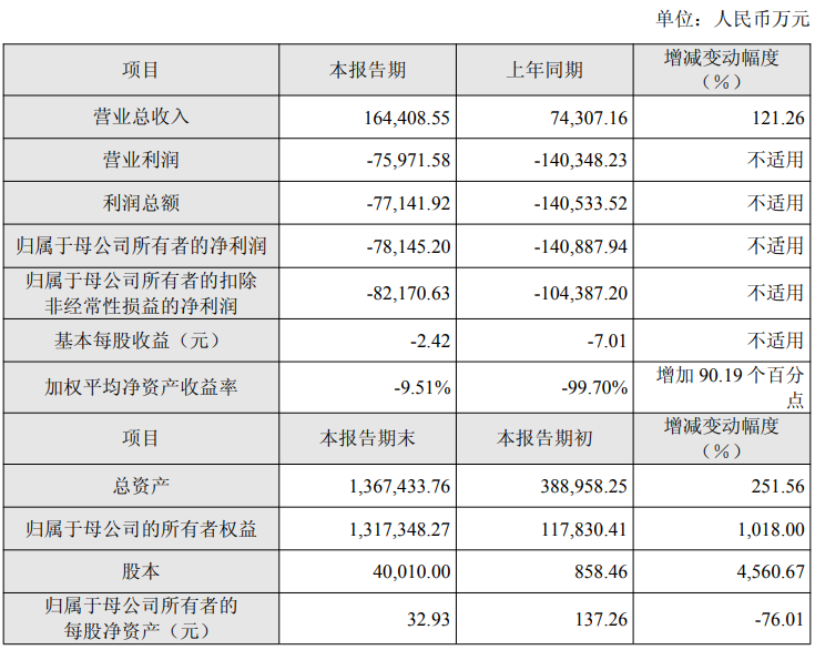 2025年沐曦股份实现营业总收入16.44亿元,较上年同期增长121.26%。归属于母公司所有者的净利润为-7.81亿元,较上年同期亏损收窄44.53%。