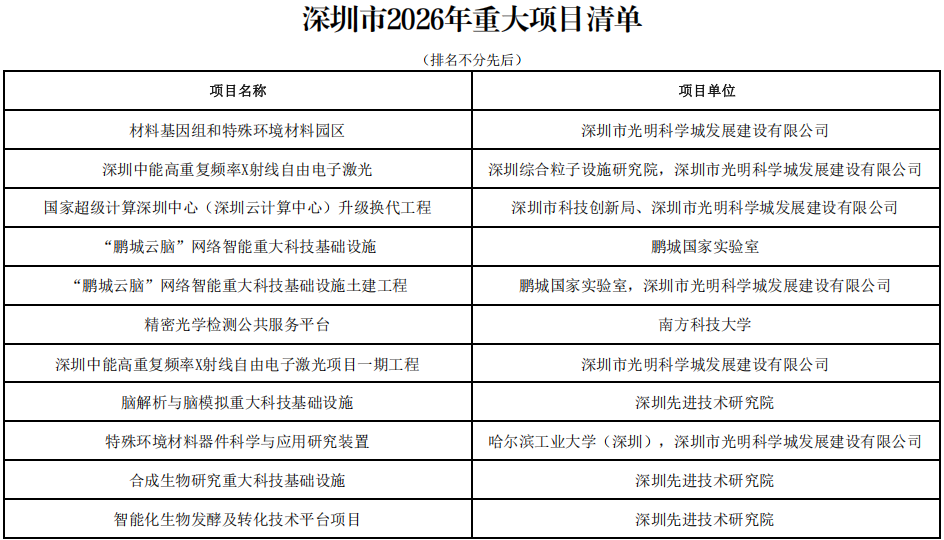 附:《深圳市2026年重大项目计划》