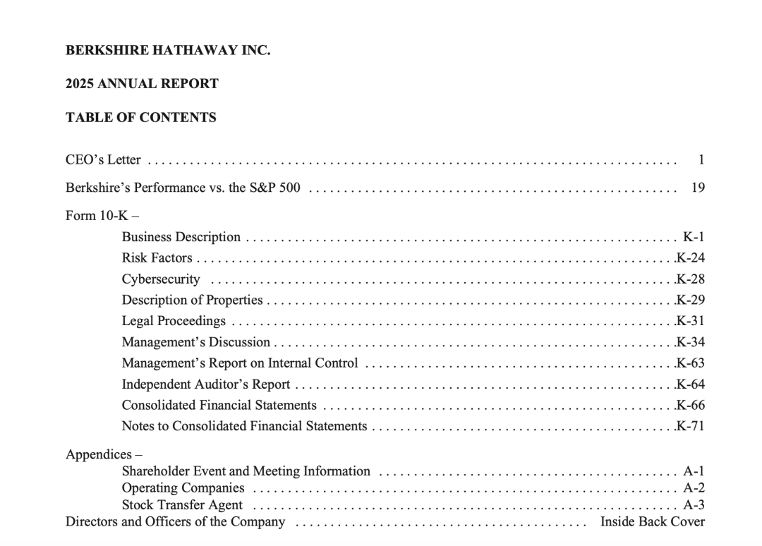 巴菲特宣布2025年底从伯克希尔·哈撒韦的CEO位置上退休,这是他退休前的最后一份年报。今年的致股东信首次由格雷格·阿贝尔撰写,标志着伯克希尔·哈撒韦正式开启格雷格·阿贝尔时代。
