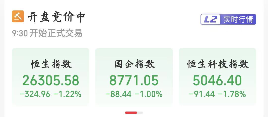 【大河财立方消息】3月2日,香港恒生指数开盘跌1.22%,恒生科技指数跌1.78%,国企指数跌1%。石油、航运板块高开,中石化油服高开15%,中远海能高开10.99%。大模型概念股低开。