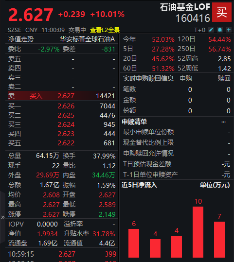 石油基金LOF复牌涨停,溢价率超过30%。此前,华安基金已经多次发布关于石油基金LOF二级市场交易价格溢价风险提示。