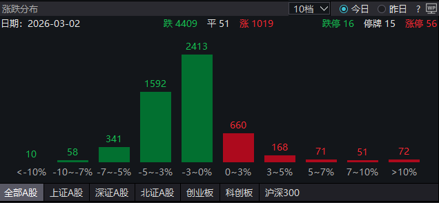 【大河财立方消息】3月2日,A股低开后,再度震荡下跌,截至11:00发稿,全市场超过4400家公司下跌。