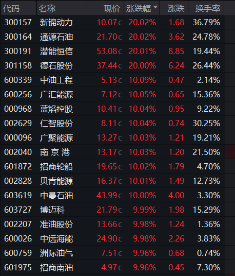 油气板块再度爆发,“三桶油”连续两个交易日涨停,新锦动力、通源石油、潜能恒信、中油工程、广汇能源等十余只个股涨停。