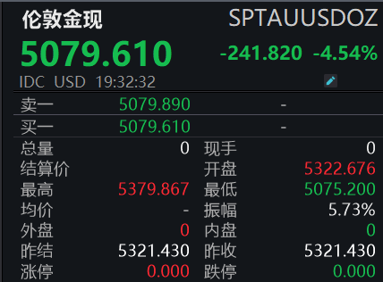 3月3日晚间,现货黄金日内跌幅超4%,报5079.610美元/盎司。现货白银日内跌幅超12%,报78.035美元/盎司。