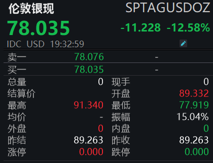 现货黄金跌超4%,白银跌超12%