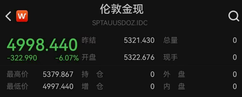 油价持续走强,黄金白银大幅下挫。截至当天收盘,纽约商品交易所WTI原油期货当月连续合约上涨3.57美元,收于每桶74.8美元,涨幅为5.01%。现货黄金跌4.39%报5088.65美元/盎司,盘中一度失守5000美元整数关口。现货白银重挫,收跌8.17%报82.06美元/盎司。