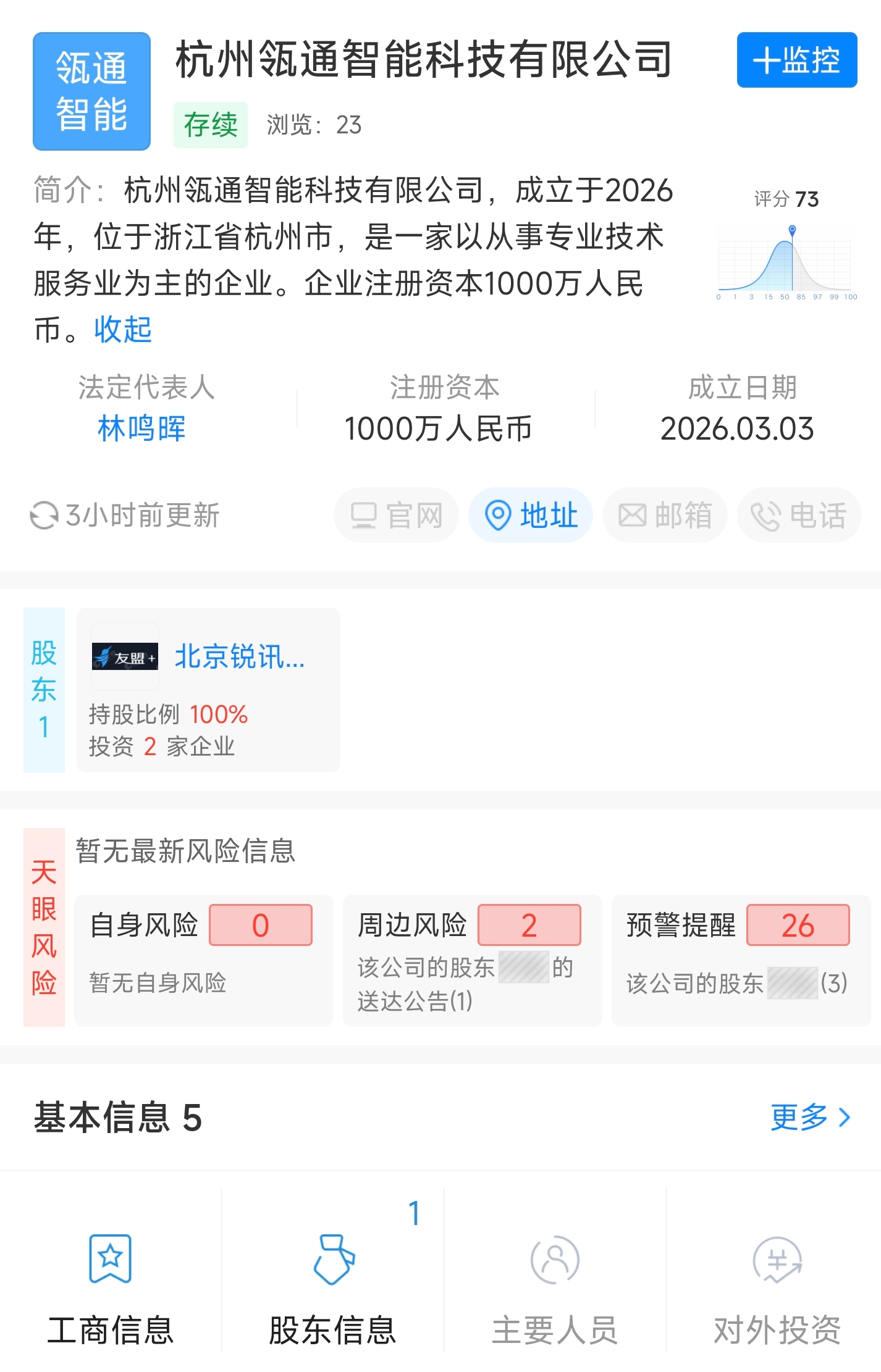 【大河财立方消息】天眼查工商信息显示,近日,杭州瓴通智能科技有限公司成立,注册资本1000万人民币,经营范围包括软件开发、计算机软硬件及外围设备制造、数据处理和存储支持服务、大数据服务、互联网数据服务、人工智能应用软件开发等。股东信息显示,该公司由阿里巴巴旗下北京锐讯灵通科技有限公司全资持股。