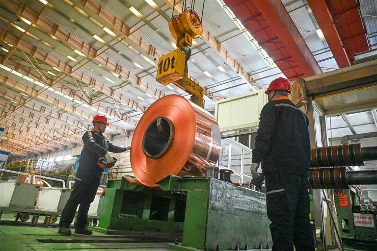 中铝洛阳铜加工有限公司(简称“洛阳铜加工”)的苏式厂房内,智能化设备精准腾挪,一卷卷崭新的铜带接连下线,经精细包装后,运往国内乃至全球各地的客户手中。