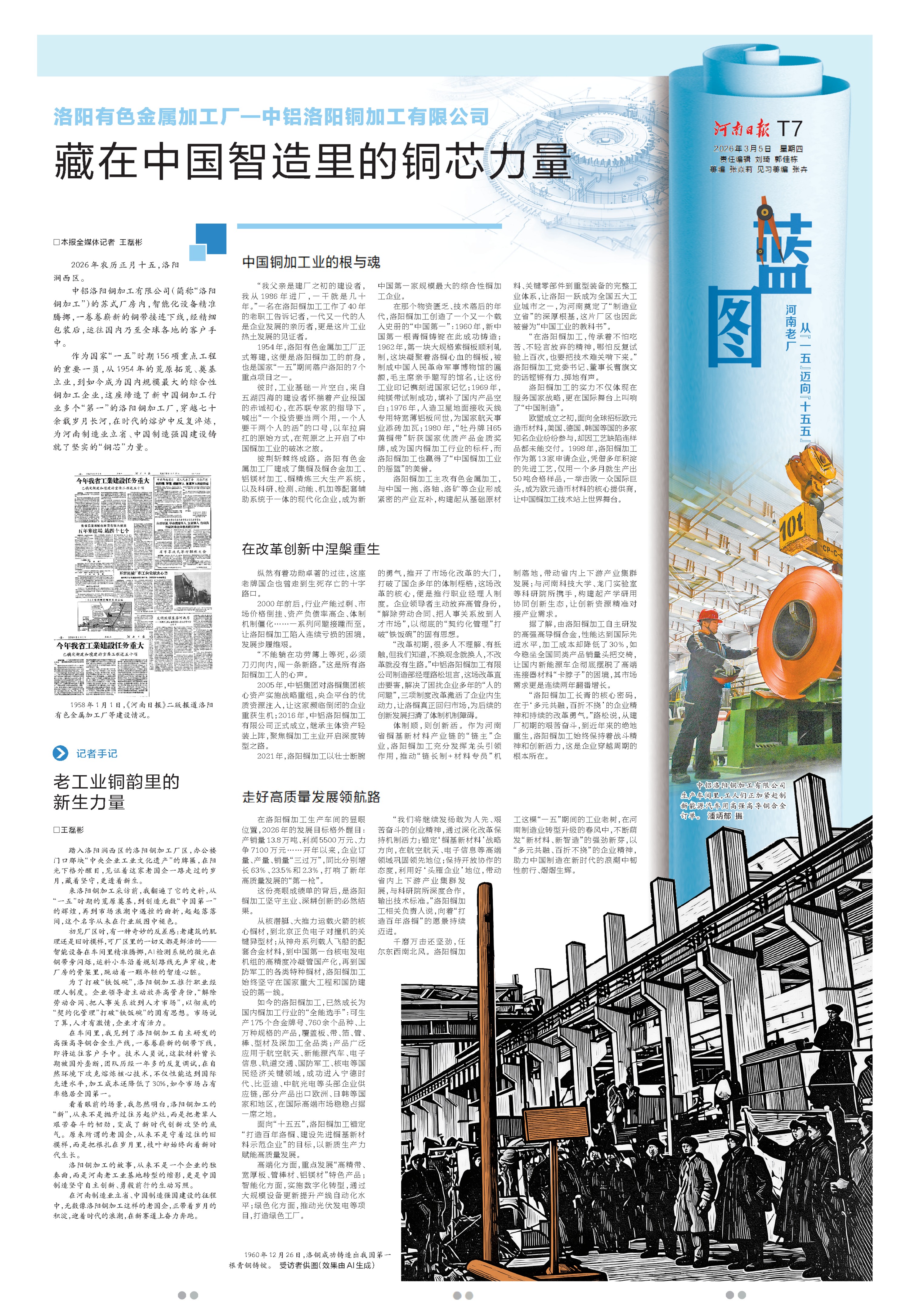 洛阳铜加工的故事,从来不是一个企业的独奏曲,而是河南老工业基地转型的缩影,更是中国制造坚守自主创新、勇毅前行的生动写照。