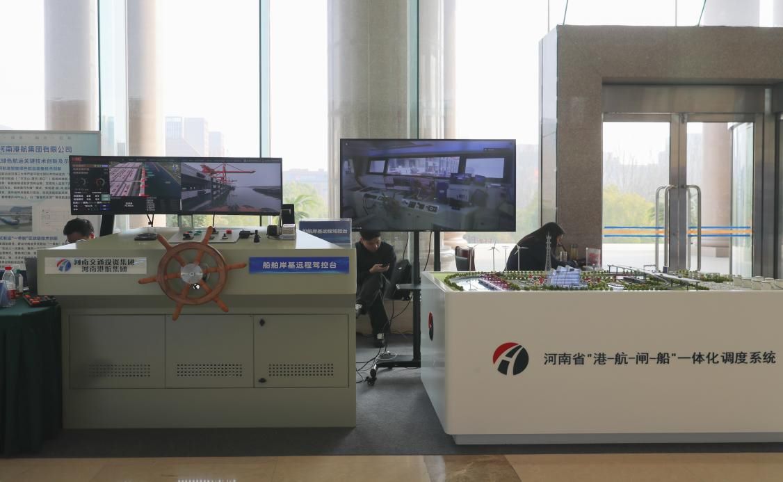 河南港航集团有限公司带来的“豫交投001”号新能源智慧货船,每公里最低耗电仅7度,远程驾驶平台可实现平均两小时接管一次的智能航行,让“船工不下船”成为现实。