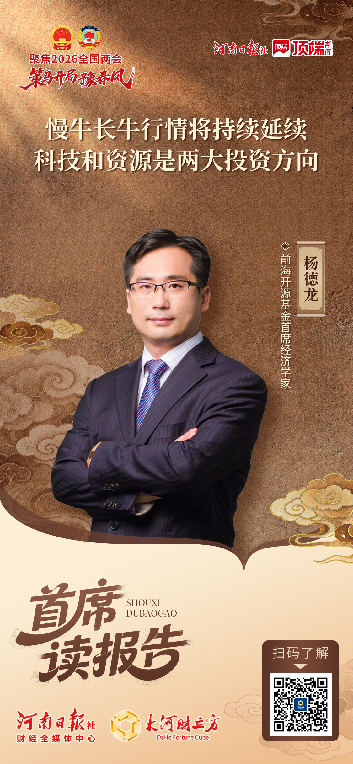 前海开源基金首席经济学家杨德龙接受大河财立方记者采访时表示,2026年作为“十五五”开局之年,资本市场慢牛长牛行情有望持续延续,科技与资源领域将成为两大核心投资主线。政府工作报告为市场上行筑牢坚实基础,资本市场在服务实体经济、提振内需消费中的作用将进一步凸显。