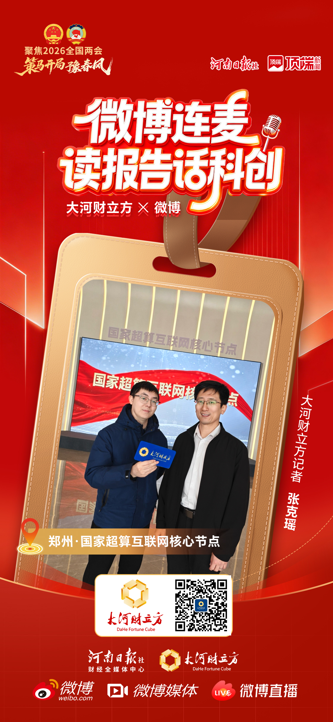 结合政府工作报告重点,大河财立方开设微博连麦话科创主题策划,四路记者当天探访北京、上海、广州、郑州当地科技创新项目。在郑州,大河财立方记者来到国家超算互联网核心节点。