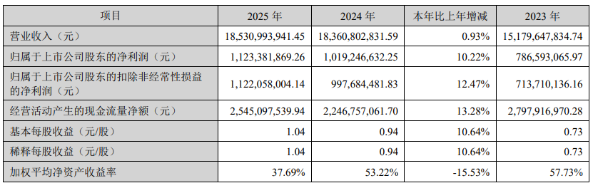【大河财立方消息】3月10日,广东TCL智慧家电股份有限公司(简称TCL智家)发布2025年年度报告。TCL智家2025年营业收入185.31亿元,同比增长0.93%;归属于上市公司股东的净利润11.23亿元,同比增长10.22%,实现连续4年归属于上市公司股东的净利润两位数增长,再创历史新高。基本每股收益1.04元。