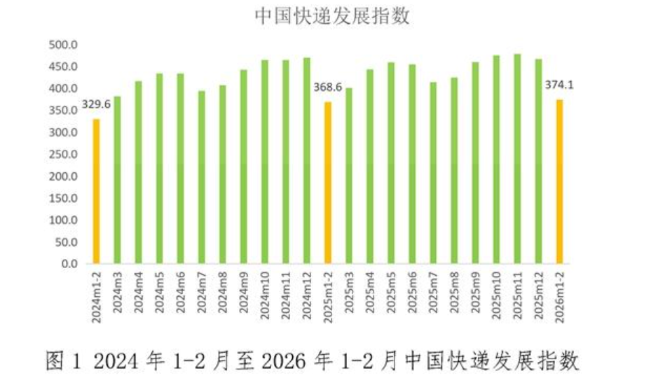 【大河财立方 记者 丁洋涛】近日,国家邮政局发布的《2026年1—2月中国快递发展指数报告》显示,今年前两个月,中国快递发展指数为374.1,同比提升1.5%。其中发展规模指数、服务质量指数和发展能力指数分别为537.9、465.6和222.9,同比分别提升3.6%、0.2%和0.7%。发展趋势指数为61.5。