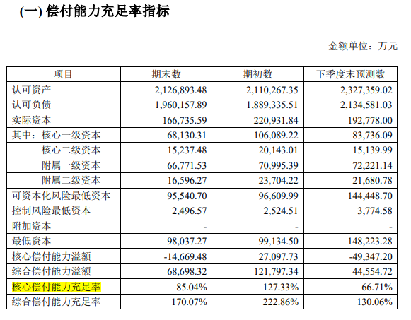 更值得关注的是,公司预测下一季度核心偿付能力充足率可能降至66.71%,距离监管要求的50%红线仅剩约16个百分点的缓冲空间。