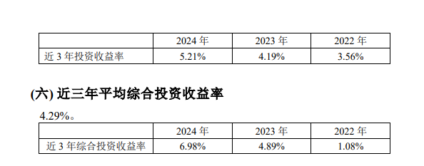 数据显示,2022年至2024年,公司投资收益率由3.56%提升至5.21%,综合投资收益率则由1.08%升至6.98%。2025年,两项指标分别为5.85%和5.52%,整体保持相对稳定。