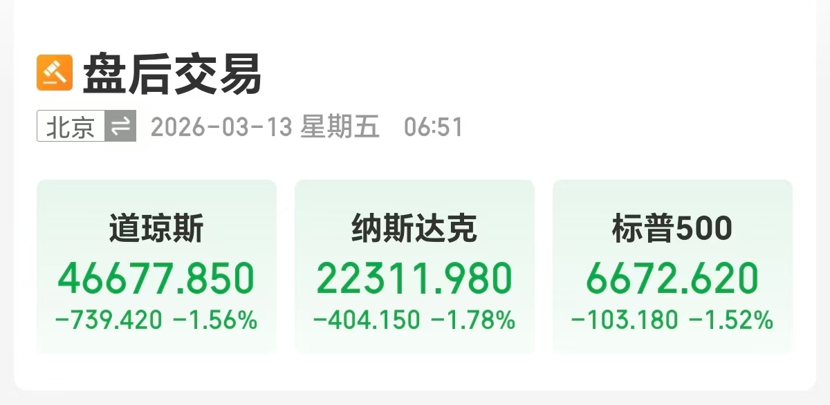 【大河财立方消息】美股三大指数收盘全线下跌。截至收盘,道琼斯工业平均指数比前一交易日下跌739.42点,收于46677.85点,跌幅为1.56%;标准普尔500种股票指数下跌103.18点,收于6672.62点,跌幅为1.52%;纳斯达克综合指数下跌404.15点,收于22311.98点,跌幅为1.78%。
