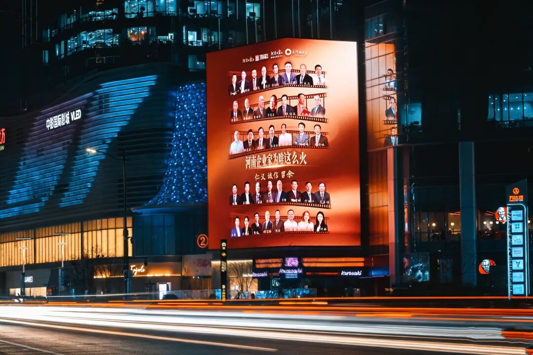 作为本次致敬豫商的载体,两块地标大屏位于郑州两大核心商圈,每日都拥有数以万计的人流,是郑州极具影响力的城市传播窗口。自点亮以来,它们以创意视觉与优质内容持续出圈,构成了一个天然的、超高曝光率的黄金场景。