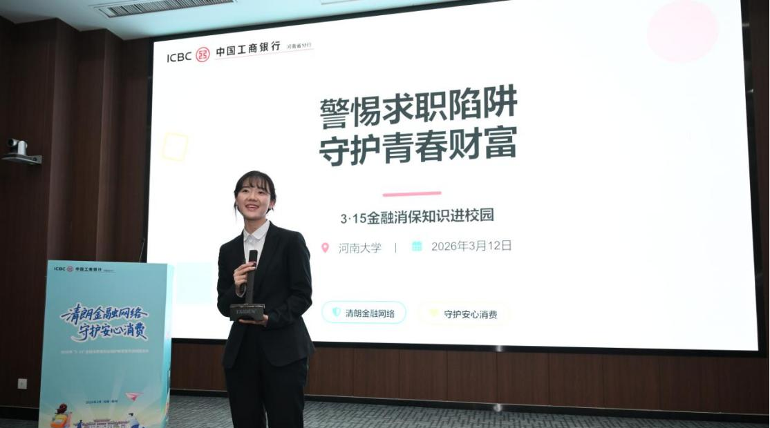 3月12日,由国家金融监督管理总局河南监管局、河南省银行业协会指导,工行河南省分行、工行郑州分行在河南大学龙子湖校区举办“3·15”金融消费者权益保护教育宣传进校园活动。工作人员在校内布放展台,开设知识讲座,并设置“消保盲盒”互动区,吸引了众多大学生驻足参与。同学们通过拆盲盒了解金融消保知识、参与互动问答。内容涵盖“识别校园贷陷阱”“防范网络刷单诈骗”“保护个人征信”等热点话题。