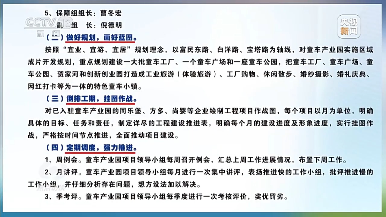 然而,这份看似严谨的方案,从头到尾都是应付检查的“纸面文章”。成为当地彰显“工作成效”的道具。在这份《耒阳市童车产业园实施方案》上,记者看到,有“成立专班”“成立项目招商建设领导小组”的字样。