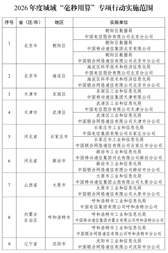 【大河财立方消息】近日,工信部印发《关于组织做好2026年度城域“毫秒用算”专项行动的通知》,拟在50个地区开展城域“毫秒用算”专项行动,河南郑州在列。