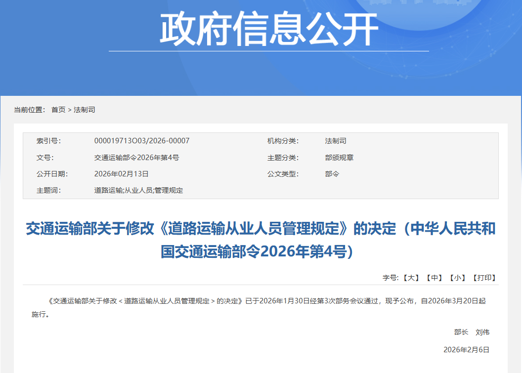 【大河财立方 记者 陈诗昂】近日,国务院发布对《中华人民共和国道路运输条例》作出修改的决定,授权交通运输部对从事道路客运、货运经营的驾驶人员年龄要求作出具体规定。据此,交通运输部修订了《道路运输从业人员管理规定》等5个部门规章,并下发《关于做好道路运输从业人员年龄新旧规定顺利衔接工作的通知》,明确将相关从业人员年龄上限由60周岁调整为63周岁。