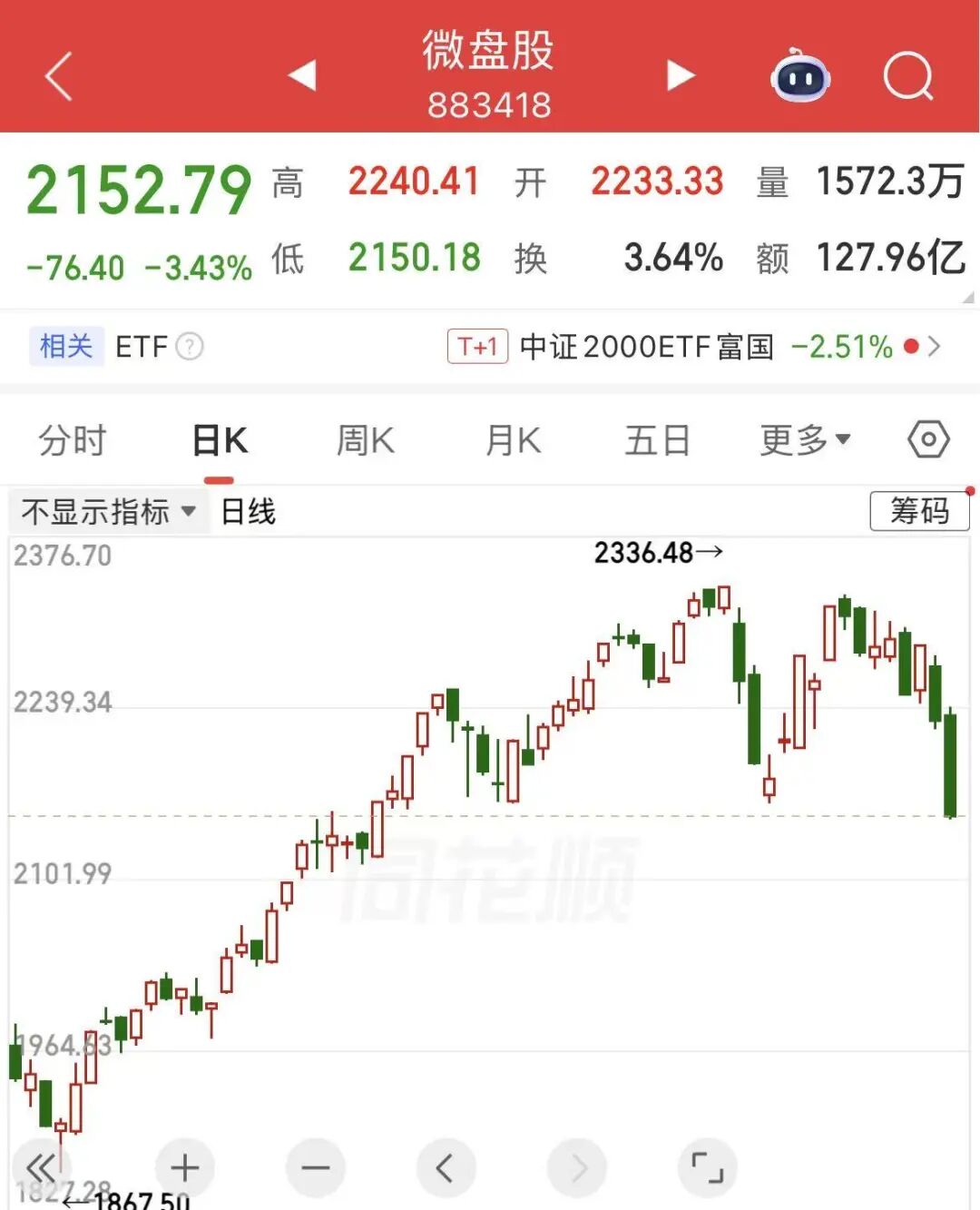 二是微盘股市盈率、市净率超行业均值,前期涨幅较大,部分资金获利了结。