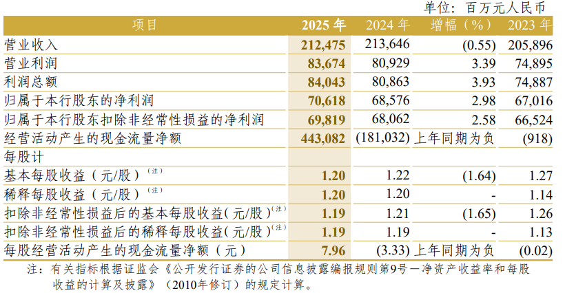 报告显示,2025年,中信银行实现归属于股东的净利润706.18亿元,比上年增长2.98%;营业收入2124.75亿元,比上年下降0.55%;其中实现利息净收入1444.69亿元,比上年下降1.51%,非利息净收入680.06亿元,比上年增长1.55%。