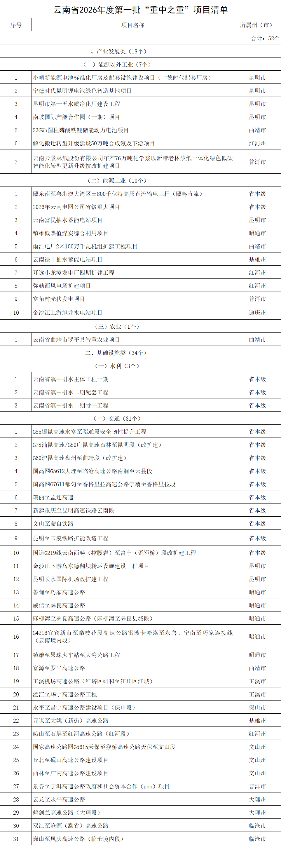 附:云南省2026年度第一批“重中之重”项目清单