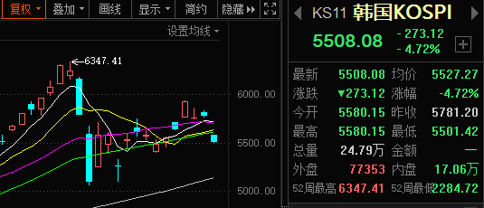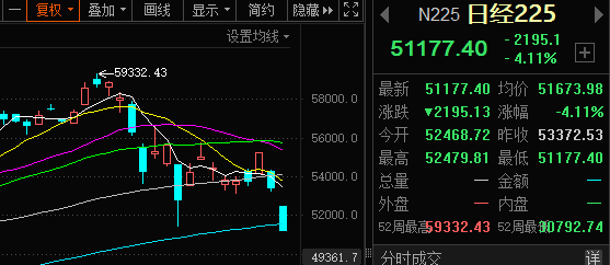 截至发稿,日经225指数下跌4.11%,韩国KOSPI指数下跌4.72%。