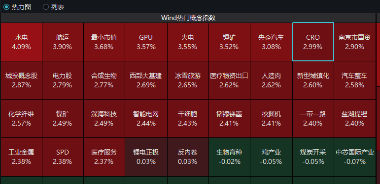 港股市场方面,CRO板块涨幅超4%。从个股来看,百奥赛图涨超10%,药明康德、药明合联涨超8%,康诺亚、康龙化成等多股跟涨。