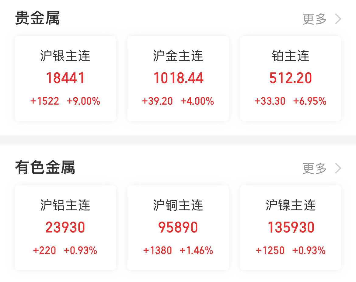【大河财立方消息】3月25日,国内商品期货涨跌不一。涨幅方面,沪银涨超9%,铂、钯涨超7%,碳酸锂涨超5%,沪金涨超4%,沪锡、多晶硅涨超3%,沪铜、国际铜、铝合金涨超1%,沪铝、沪镍涨近1%。