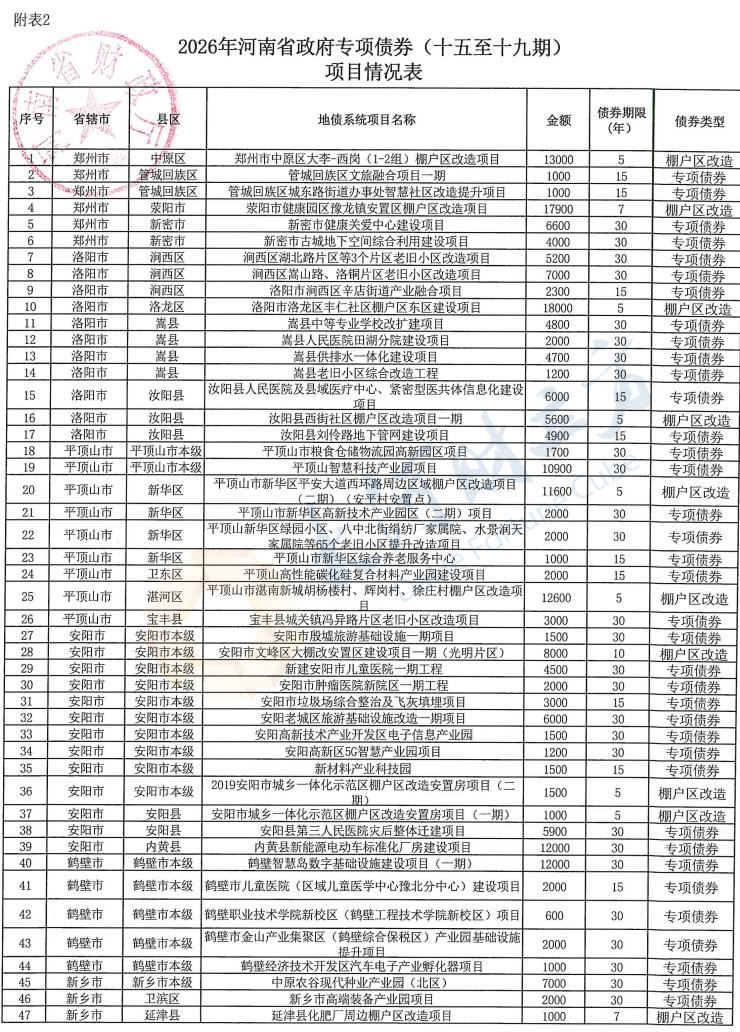 【大河财立方消息】河南省财政厅消息,3月25日,河南省在上海成功发行政府债券260.06亿元。再融资专项债券197.32亿元,用于置换存量隐性债务;新增专项债券62.74亿元,其中:13.48亿元用于补充政府性基金财力,49.26亿元投向保障性安居工程、市政和产业园区基础设施、新型基础设施和社会事业等重点领域的103个项目建设。