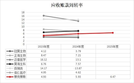 在营收增长承压的背景下,赛克赛斯的应收账款周转率偏低问题相对突出。