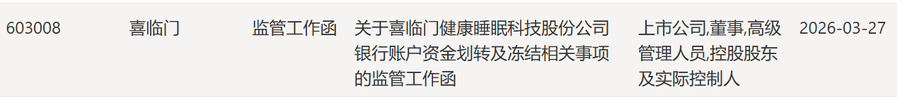 当日,该事件也引起监管的重视。上交所于27日晚间就喜临门账户资金划转及冻结相关事项下发监管工作函,涉及对象为上市公司、董事、高级管理人员、控股股东及实际控制人。