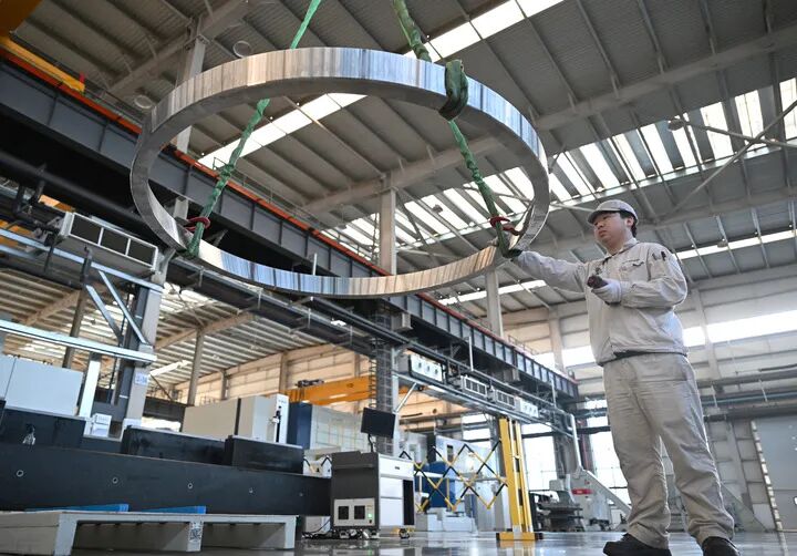 工人在位于河南洛阳的洛轴集团智能工厂生产线上作业。新华社记者 李嘉南 摄