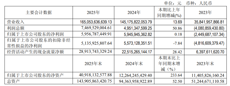 数据显示,2025年,赛力斯实现营收1650.54亿元,同比增长13.69%;归母净利润59.57亿元,同比增长0.18%;扣非净利润51.36亿元,同比下降7.84%。其中,核心子公司赛力斯汽车营收1554.86亿元,同比增长13.19%;扣非净利润62.52亿元,同比增长24.69%;年度经营活动产生的现金流量净额289.14亿元,同比增长28.42%。
